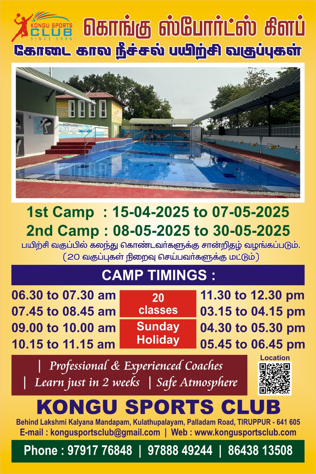 1 st Swimming Summer Camp Will be Held On April 15 to May 7 .